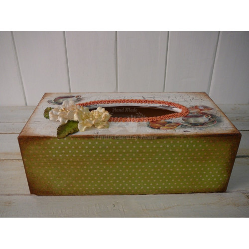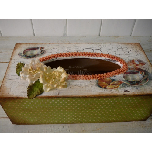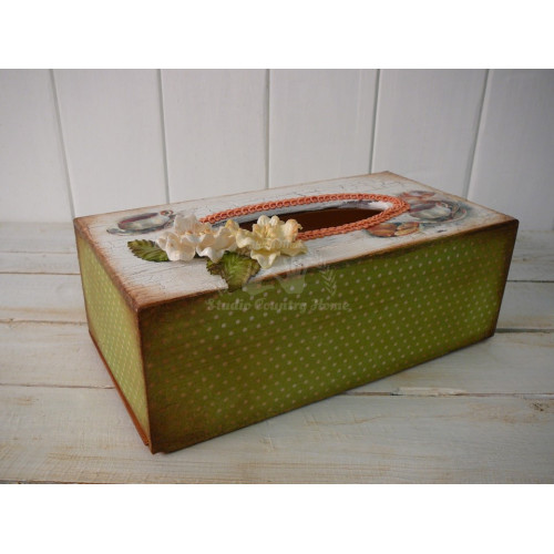 Krabica na kapesníky upravená technikou decoupage. V ponuke sú aj iné kusy z tejto kolekcie.
