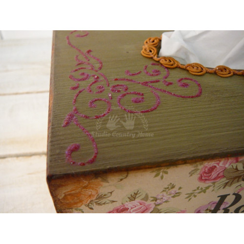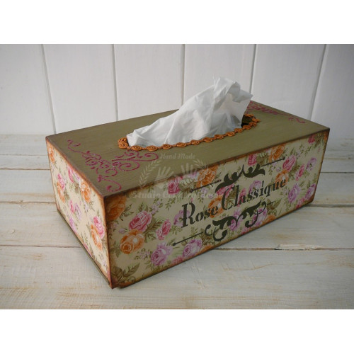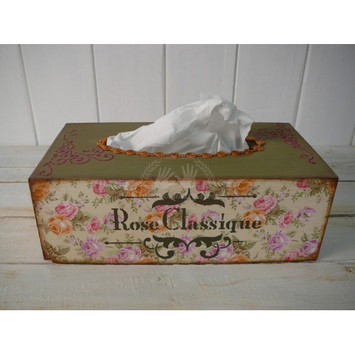 Krabica na kapesníky upravená technikou decoupage. V ponuke sú aj iné kusy z tejto kolekcie.