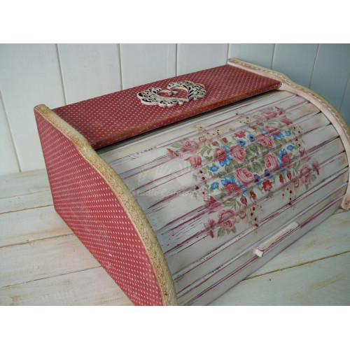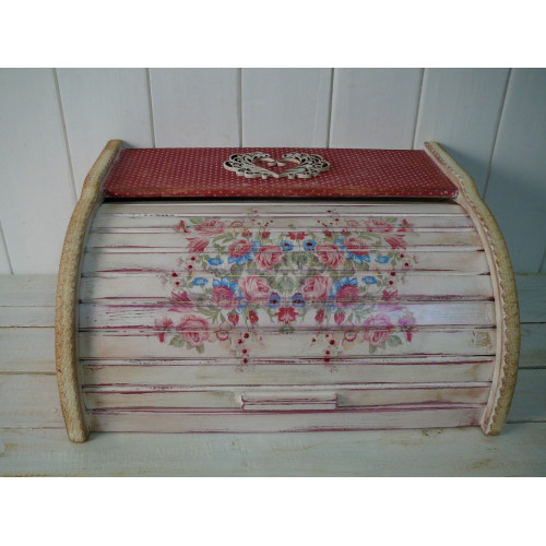 Box na pečivo a chlieb z masívneho bukového dreva - SLOVENSKÝ VÝROBOK upravený technikou decoupage a dozdobený bavlnenou čipkou a dreveným komponentom, ktorý vytvára 3D efekt. Je prelakovaný ECO lakom, takže je vhodný na bežné používanie v domácnosti. V ponuke sú aj iné kusy z tejto kolekcie.