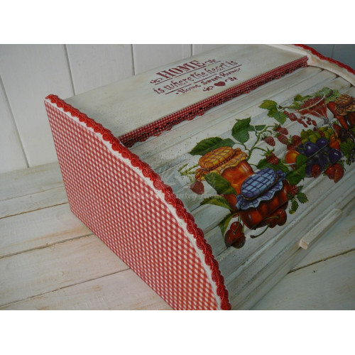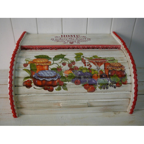 Box na pečivo a chlieb z masívneho bukového dreva - SLOVENSKÝ VÝROBOK upravený technikou decoupage a dozdobený bavlnenou čipkou a 3D nápisom . Je prelakovaný ECO lakom, takže je vhodný na bežné používanie v domácnosti.