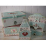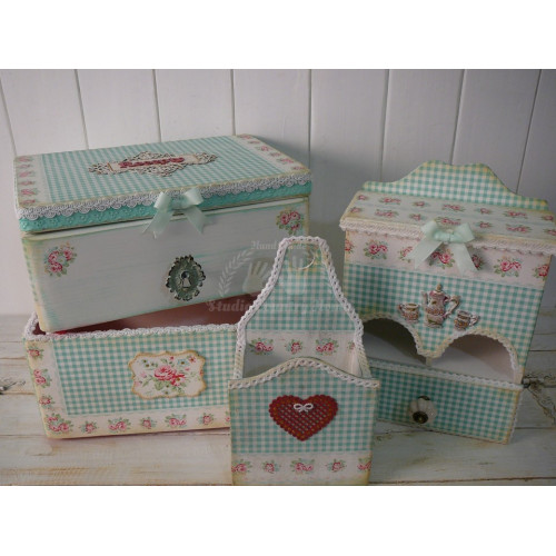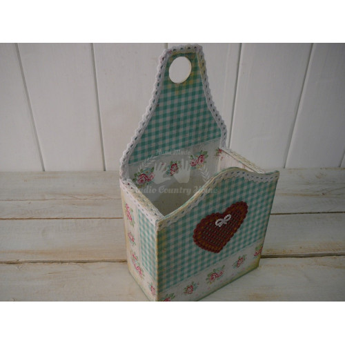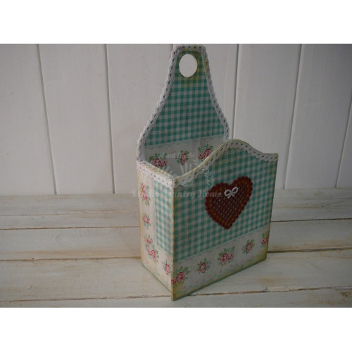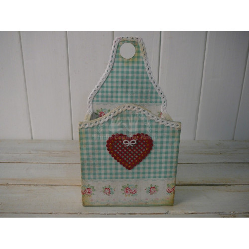 Závesný drevený držiak upravený technikou decoupage. Je vhodný na varešky, alebo aj na kozmetiku, hrebene, čaje a rôzne drobnosti. V ponuke sú aj iné kusy z tejto kolekcie.