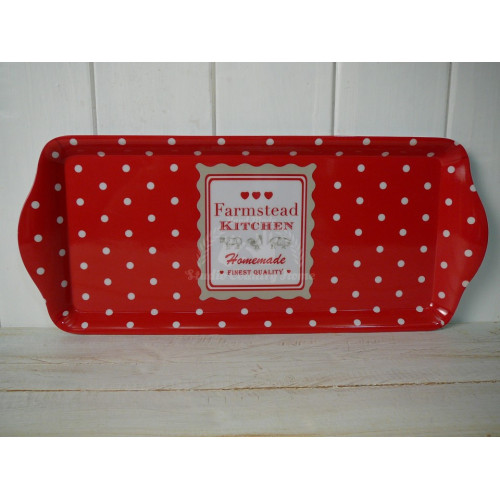 Melanínový podnos, červený s bielymi bodkami zn. DMD. V ponuke sú aj iné kusy z tejto kolekcie.