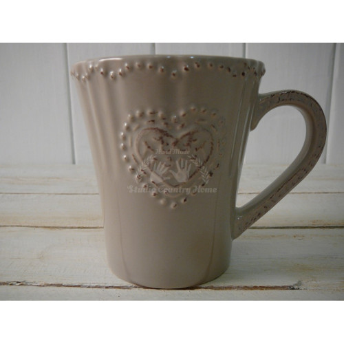 Keramický hrnček farby ,,bahama,, s hnedou patinou a 3D reliéfom.