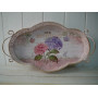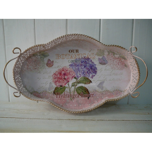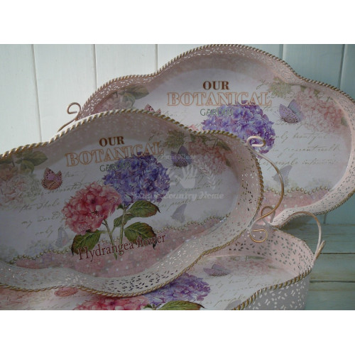 Sada 3 kusov kovových podnosov ružovej farby so zlatou patinou a obrázkom zn. INART. Uvedený je rozmer najväčšieho podnosu. Stredný podnos 43x26x9cm, najmenší podnos 39x23x9cm.