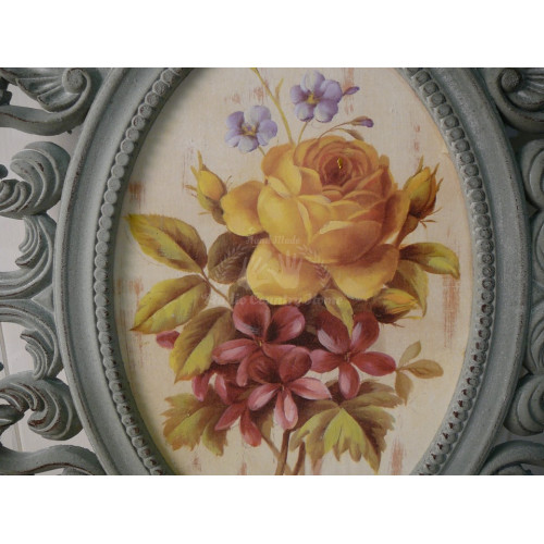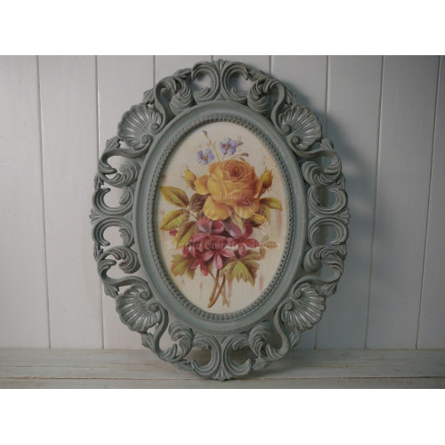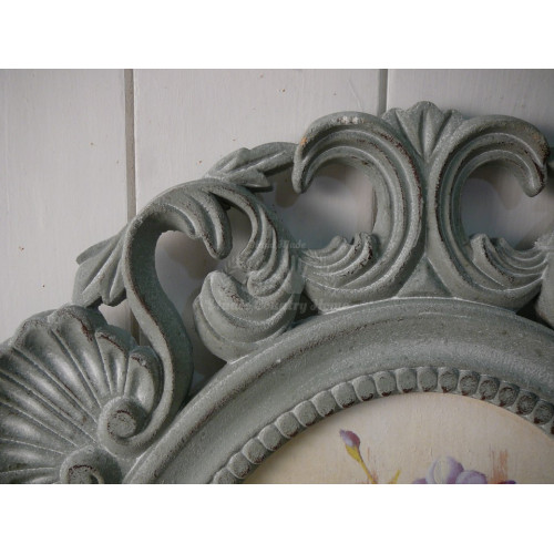 Veľmi precízne vypracovaný obraz zn. CLAYRE-EEF. Rám z MDF. Obrázok - reprodukcia. Farba - svetlá, zeleno-modrá s patinou. Krásny doplnok v štýle Vintage. Na sklade v obmedzenom množstve. POZOR: farba rámu nie je sivá !!!