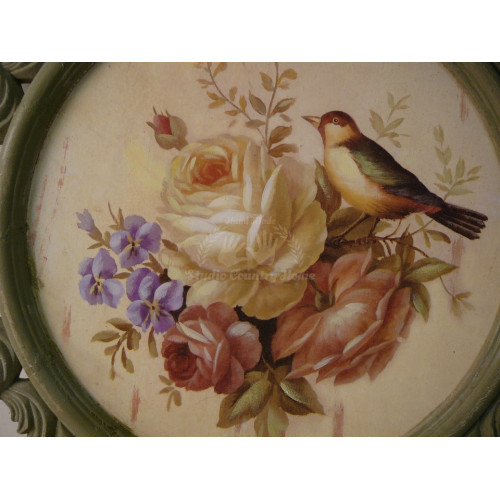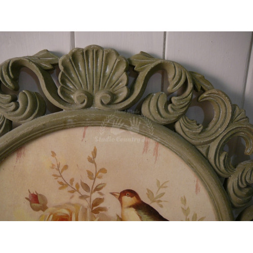 Veľmi precízne vypracovaný obraz zn. CLAYRE-EEF. Rám z MDF. Obrázok - reprodukcia. Farba - svetlá, olivovo-zelená s patinou. Krásny doplnok v štýle Vintage. Na sklade v obmedzenom množstve.