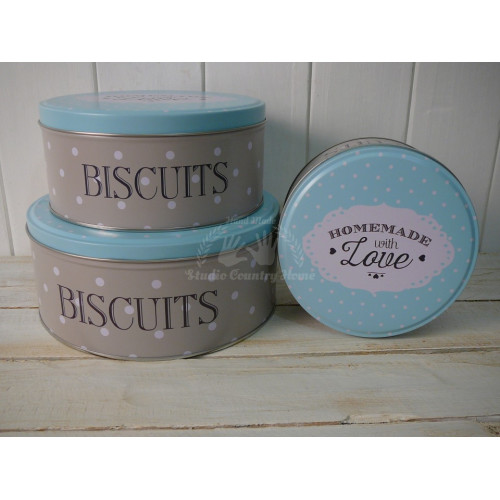 Sada 3 kusov kovových dóz v štýle Vintage zn. D´Casa. Sú vhodné na uskladnenie rôznych druhov potravín, sladkého pečiva, sladkostí a pod. Ale dobre poslúžia aj na odloženie drobností, či len tak na dekoráciu pre potešenie. Uvedený je rozmer najväčšej dózy. Rozmer strednej dózy je 16,5x16,5x7,5cm, najmenšej 14x14x6,8cm.