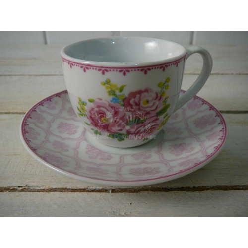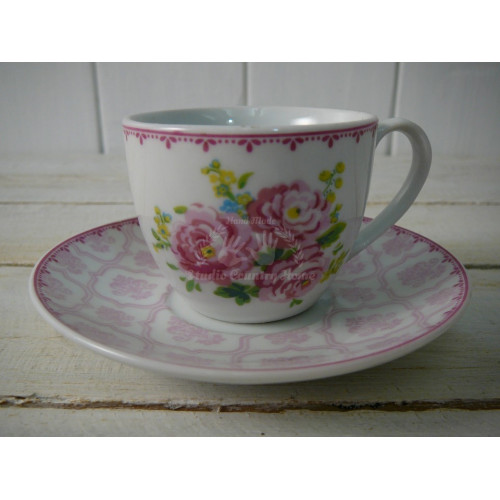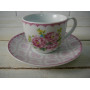 Sada 6 kusov porcelánových šálok s podšálkami s krásnym vzorom ružových kvetov zn. INART. Šálka 90 ml, podšálka pr. 11 cm.