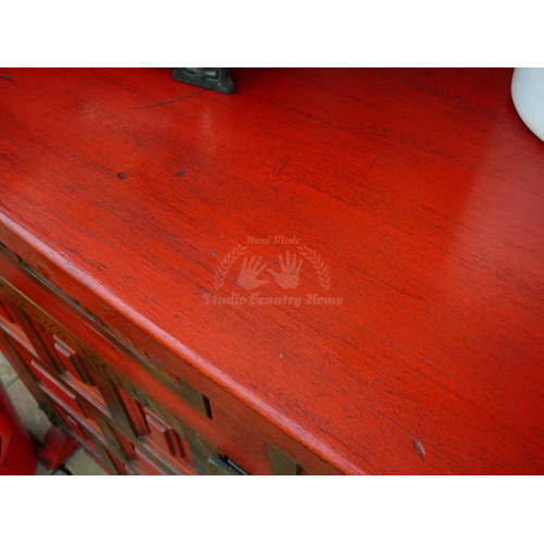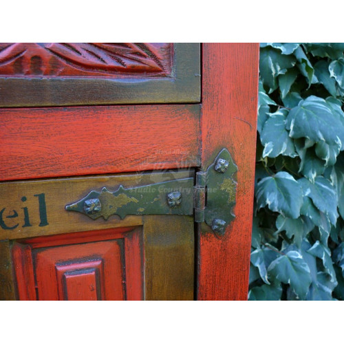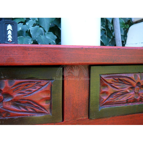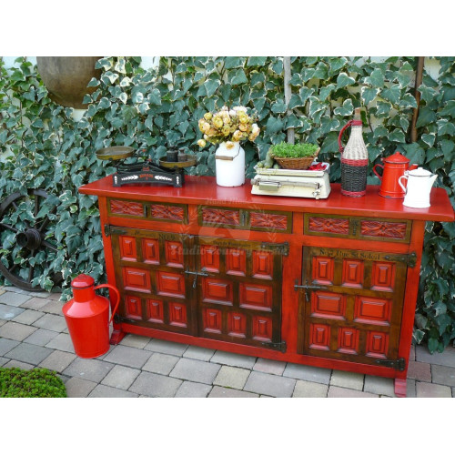Koloniálna komoda z exotického dreva červenej farby s hnedou patinou upravená v štýle VINTAGE. Vo vnútornej časti má po celej dĺžke policu. Je dosť ťažká. Má krásne pôvodné kovania. Bude neprehliadnuteľným doplnkom Vašej domácnosti.