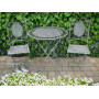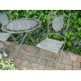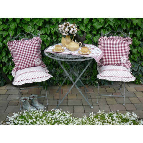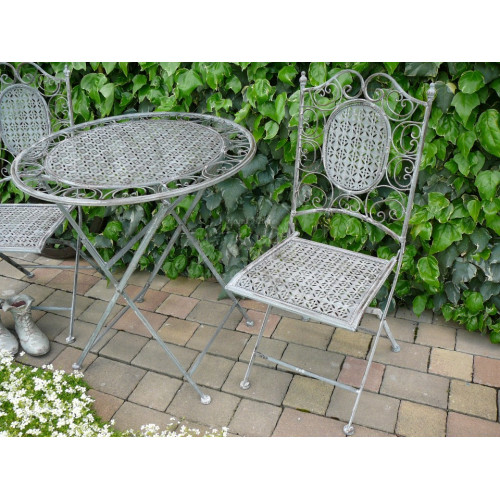 Krásny set záhradného sedenia z kovu sivej farby s hnedou patinou zn. CLAYRE EEF. Set obsahuje stôl v. 75 cm a priemer 70 cm a dve skladacie stoličky 41x48x95 cm. Je veľmi pekne vypracovaný. Momentálne je dostupný u dodávateľa. V období od mája do augusta býva často nedostupný. Na základe objednávky je doručenie cca 3 týždne. Jedná sa o veľmi obľúbený kúsok u zákazníkov, pretože krásne doplní Váš balkón, terasu, či záhradu.