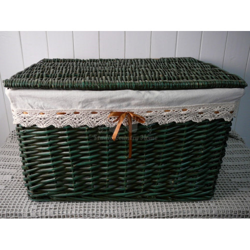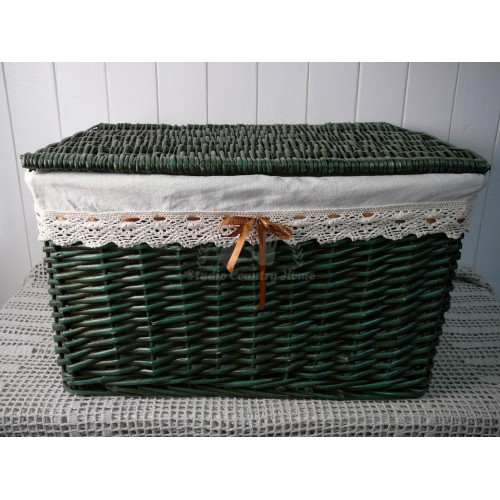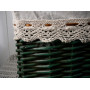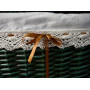 Krásna nová truhlica zelenej farby s hnedou patinou upravená v štýle VINTAGE . Má bavlnenú vložku so saténovou stuhou a krajkou s praktickými šnúrkami na uviazanie. Praktický a zároveň veľmi pekný doplnok.