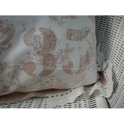 Kvalitná obliečka na vankúš zo 100% bavlny zn. CLAYRE EEF. Krásny figurálny vzor doplnený bavlnenou krajkou v štýle SHABBY. Vzadu má iný vzor a zips.